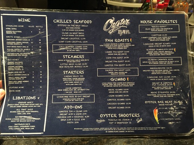 そんなザ・オイスターバー・アット・パレスステーションのメニューがこちら。