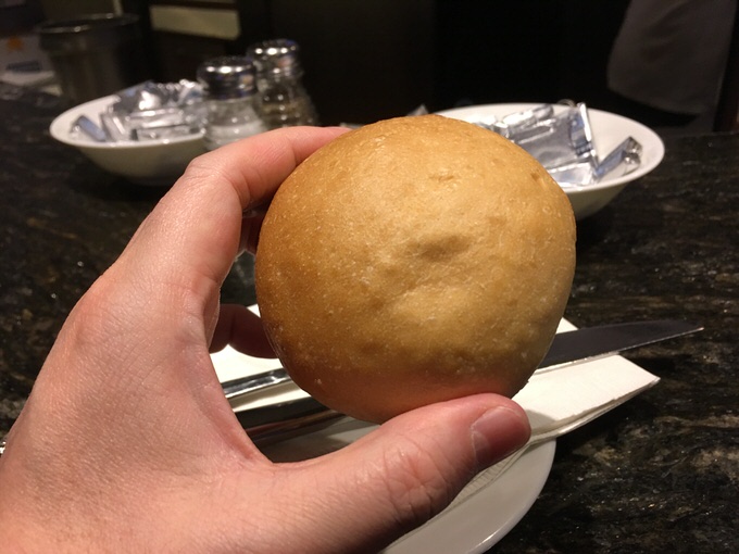 パンは野球ボールくらいのサイズで味は可もなく、不可もなく。料理が出てくるまでのアテとしてもいけますし、魚介のダシが染み出したスープ料理に浸して食べるのにもよさそうです。