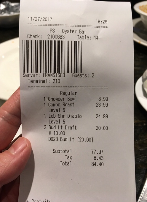 お会計は税込みで84.4ドル