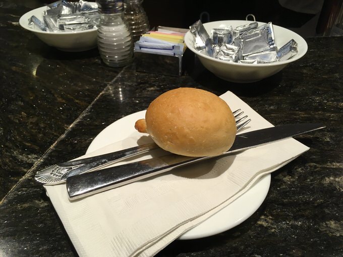パンは野球ボールくらいのサイズで味は可もなく、不可もなく。料理が出てくるまでのアテとしてもいけますし、魚介のダシが染み出したスープ料理に浸して食べるのにもよさそうです。