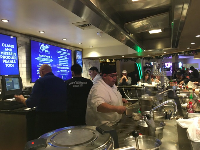 オイスターバーの料理は全てが目の前のキッチンで作られるので、見ていて楽しいですし、熱々できたてを食べられます。