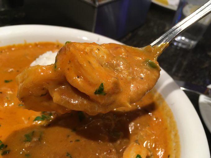 トマトベースのスープはドロっとしていて濃い味で、魚介のダシがでているだけでなく、スパイスが効いていてグッド!